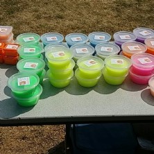 In a very short time I had lots of requests to make more and was also asked for different colours. I sold enough to buy ingredients to make more. The ingredients I use are glue, paint and borax (which is an activator to make the slime). I asked if I could sell this at my local primary school at their Christmas fete.  This was a huge success as I made 40 tubs of varying sizes, which I sold in 30 minutes. The demand was so much higher than the amount I had produced, so I took orders from children to make and deliver the following week to them. The following summer I went back more prepared having made 100 which also sold out. I have also been to Edith Weston and Northborough primary schools which have all been successful.