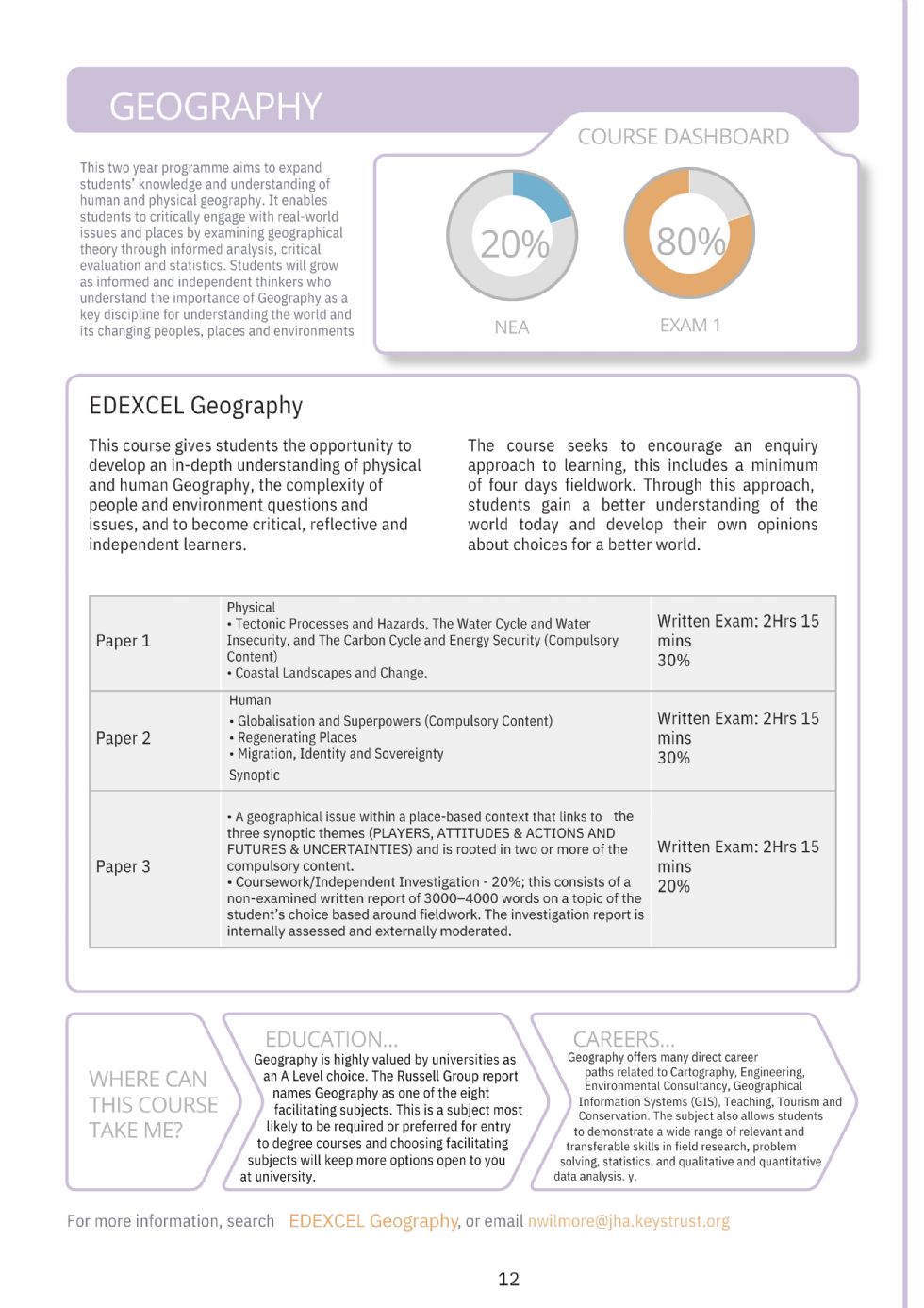 • Be equipped for ambitious next steps, including A Level study, apprenticeships or geography-related careers.