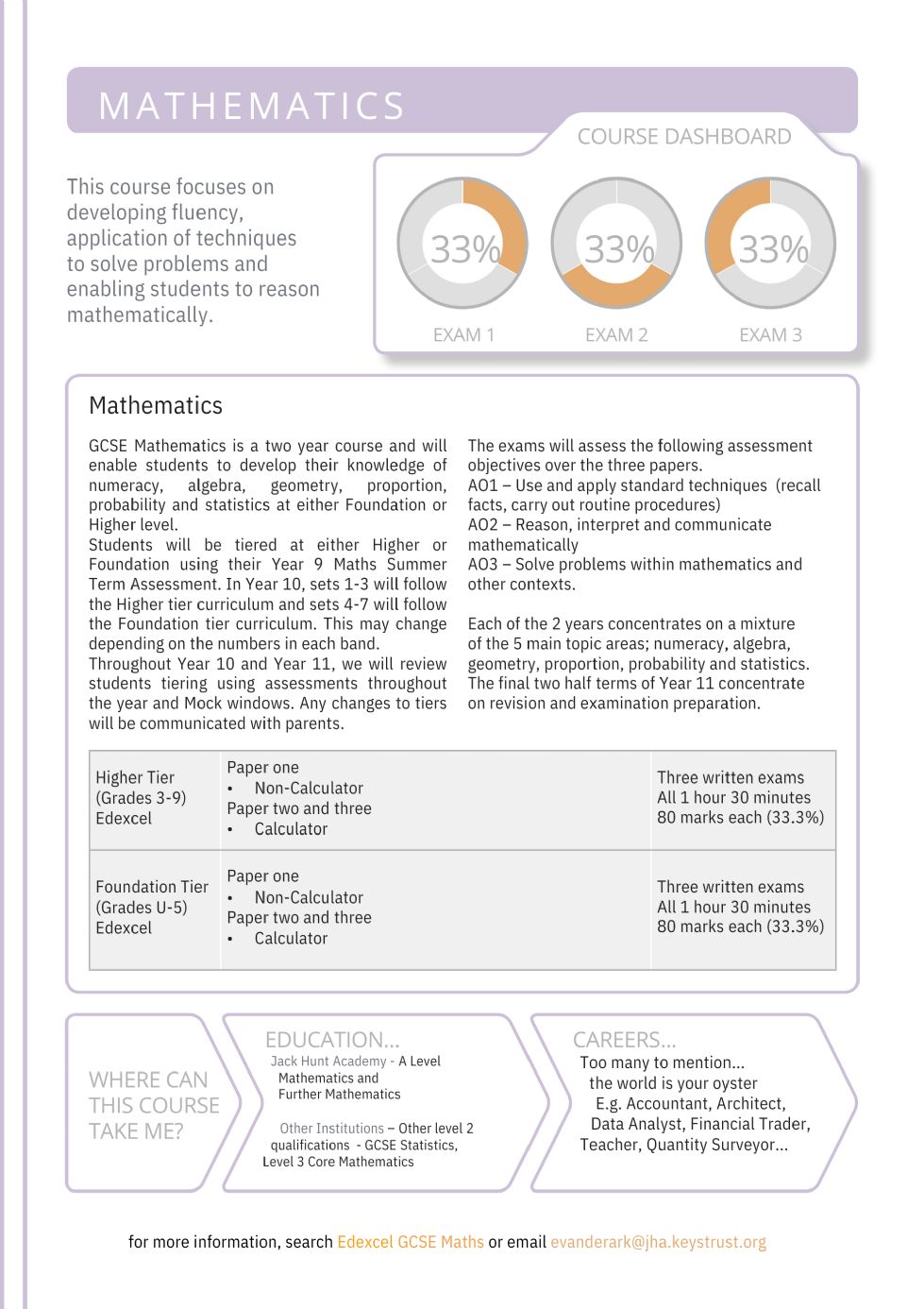 At KS4, students either sit the Foundation or the Higher Tier for GCSE Maths. We stay flexible within our groupings and use our assessments to revisit tier decisions. This continues from Year 10 up until February Half-Term in Year 11. This flexibility provides all students with the opportunity to sit the best exam tier for them.